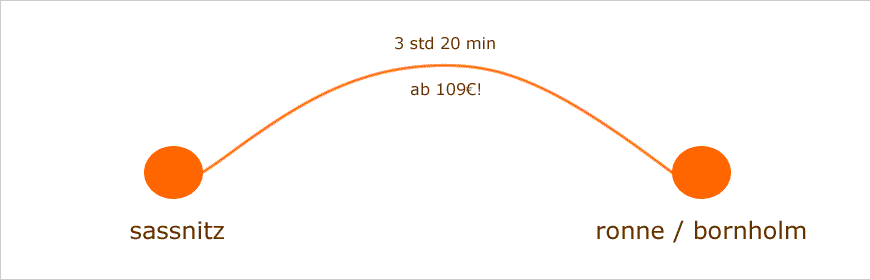 die fähre ab sassnitz ist die einzige fährverbindung von deutschland nach bornholm. die saisonale strecke wird jeweils von april bis ende oktober jeden jahres angeboten. die fährverbindung sassnitz rönne verkehrt dabei 3x wöchentlich, zu den ferien täglich. innerhalb der hauptsaison an samstagen und sonntagen bestehen zwei abfahrten. die fahrzeit sassnitz rönne beträgt jeweils rund 4 stunden in beide richtungen.